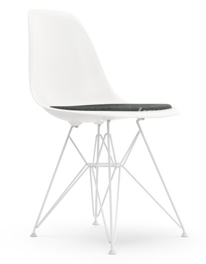 Eames Plastic Side Chair RE DSR, Blanc non-RE, Avec coussin d'assise, Nero / ivoire, Version standard - 43 cm, Revêtement blanc