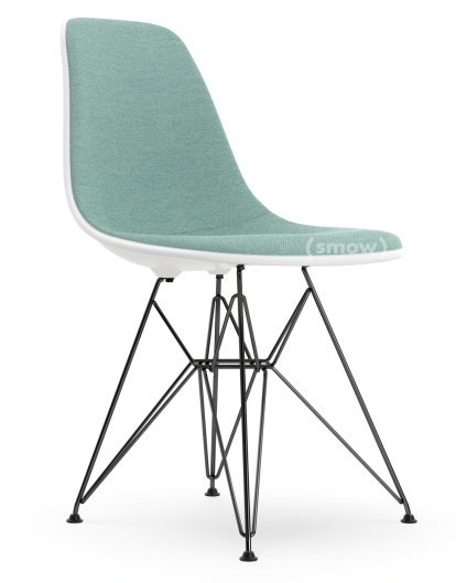 Eames Plastic Side Chair RE DSR, Blanc non-RE, Rembourrage intégral, Bleu glacier / ivoire, Version standard - 43 cm, Revêtement basic dark