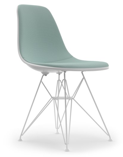 Eames Plastic Side Chair RE DSR, Coton blanc, Rembourrage intégral, Bleu glacier / ivoire, Version standard - 43 cm, Revêtement blanc