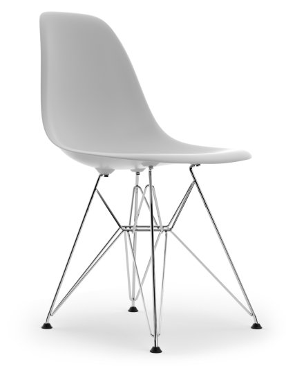 En utilisant des procédés de fabrications et des matériaux nouveaux, Charles et Ray Eames révolutionnèrent plus d’une fois l’histoire du mobilier. Ce fut le cas notamment avec les plastic chairs, qui furent conçues en 1948 à l’occasion du concours organisé par le Museum of Modern Art de New York : "International Competition for Low Cost Furniture". Avec leurs chaises dont l’assise est constituée d’un seul bloc en résine de polyester renforcée de fibre de verre, les Eames remportèrent la deuxième place. Ce matériau présentait de nombreux avantages parmi lesquels sa souplesse, son prix abordable et la possibilité de produire les chaises en grandes séries, ce qui répondait tout à fait aux besoins de l’Amérique des années 1950. En plus de la chaise DSR, Charles et Ray Eames créèrent bien d’autres chaises en plastique adaptées à diverses situations grâce à différents types d’assises et de piètements. On les retrouve d’ailleurs aujourd’hui dans de nombreux musées et dans un nombre incalculable de foyers. Pour ce qui est de la chaise DSR, il s’agit d’une chaise très fine qui tient sur quatre pieds en fils d'acier chromé. Charles et Ray Eames décrivaient l'un de leurs objectifs primordiaux en tant que créateurs de mobilier comme suit : « Rendre le meilleur accessible au plus grand nombre ». Parmi leurs créations, aucune autre ne semble leur avoir permis de s'approcher autant de cet idéal que la chaise DSR.