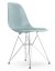 Eames Plastic Side Chair RE DSR, Gris bleuté, Avec coussin d'assise, Bleu glacier / ivoire, Version standard - 43 cm, Chromé