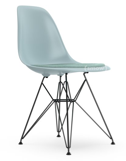 Eames Plastic Side Chair RE DSR Gris bleuté|Avec coussin d'assise|Bleu glacier / ivoire|Version standard - 43 cm|Revêtement basic dark