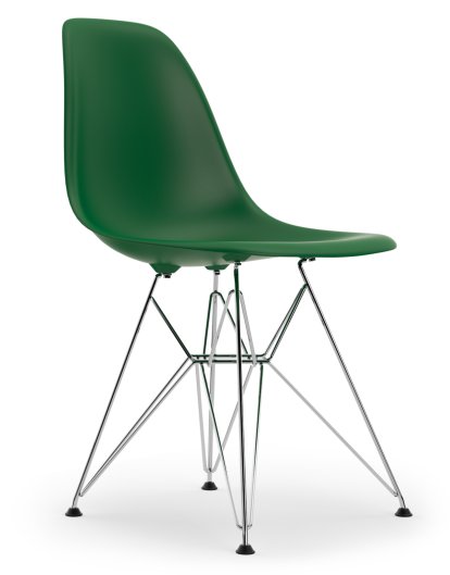 Eames Plastic Side Chair RE DSR, Vert émeraude, Sans rembourrage, Sans rembourrage, Version standard - 43 cm, Chromé