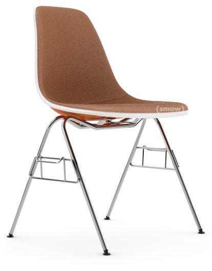 Eames Plastic Side Chair RE DSS / DSS-N, Orange rouille, Rembourrage intégral, Cognac / ivoire, Avec liaison de rangée (DSS)