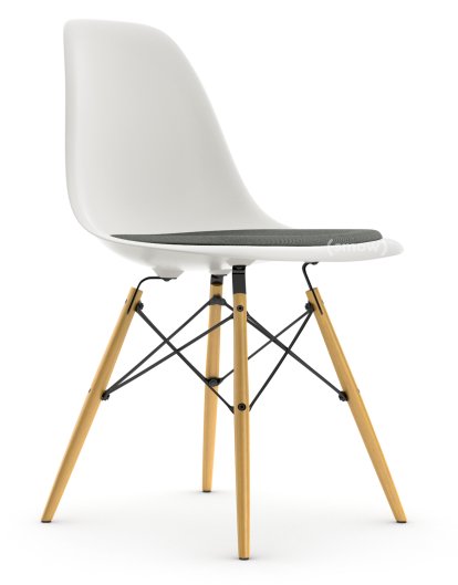 Eames Plastic Side Chair RE DSW, Blanc non-RE, Avec coussin d'assise, Nero / ivoire, Version standard - 43 cm, Frêne tons miel