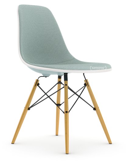 Eames Plastic Side Chair RE DSW, Gris bleuté, Rembourrage intégral, Bleu glacier / ivoire, Version standard - 43 cm, Érable nuance de jaune