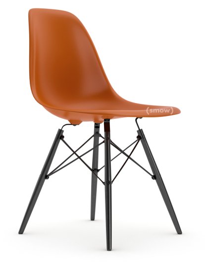 Eames Plastic Side Chair RE DSW, Orange rouille, Sans rembourrage, Sans rembourrage, Version standard - 43 cm, Érable noir