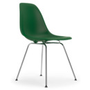 En 1948, le Museum of Modern Art de New York lança le concours « Low Cost Furniture Design » dont le but était de contribuer à la création de meubles innovants, soit fonctionnels, accessibles et flexibles qui devaient répondre aux nouveaux besoins de la vie moderne. Charles Eames fit d’ailleurs partie des lauréats avec ses Plastic Side Chairs. Après de nombreuses expérimentations avec divers matériaux, ce dernier parvint à créer une coque en polyester renforcé à la fibre de verre, qu’il était possible de produire en série. Que ce soit pour les Eames Side Chairs ou pour les Eames Armchairs, les coques peuvent être combinées avec différents piétements, et par conséquent être adaptées à de nombreuses situations. Enfin, l’abréviation « DSX » signifie « Dining Height Side Chair avec X-Base », ce qui fait référence à sa coque fine et son piétement simple en acier.