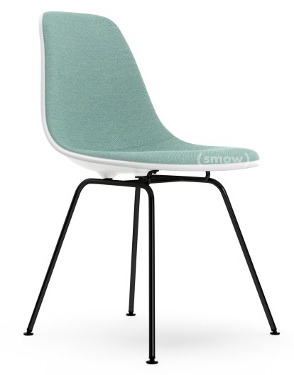 Eames Plastic Side Chair RE DSX Blanc non-RE|Rembourrage intégral|Bleu glacier / ivoire|Version standard - 43 cm|Revêtement basic dark