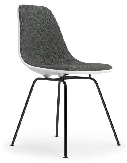 Eames Plastic Side Chair RE DSX, Coton blanc, Rembourrage intégral, Nero / ivoire, Version standard - 43 cm, Revêtement basic dark