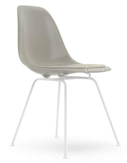 Eames Plastic Side Chair RE DSX, Galet, Avec coussin d'assise, Gris chaud / ivoire, Version standard - 43 cm, Revêtement blanc