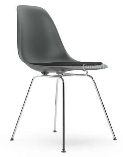 Eames Plastic Side Chair RE DSX, Gris granit, Avec coussin d'assise, Gris foncé, Version standard - 43 cm, Chromé