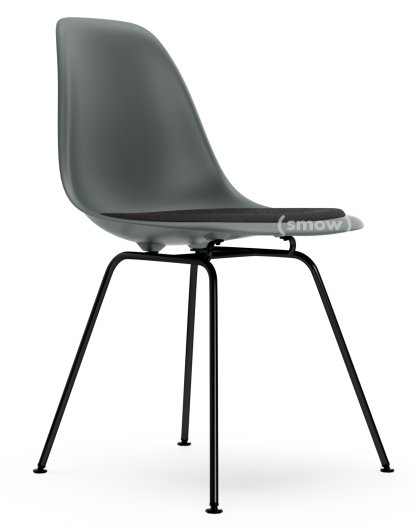 Eames Plastic Side Chair RE DSX, Gris granit, Avec coussin d'assise, Gris foncé, Version standard - 43 cm, Revêtement basic dark