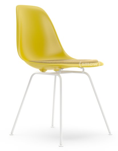 Eames Plastic Side Chair RE DSX, Moutarde, Avec coussin d'assise, Moutarde / ivoire, Version standard - 43 cm, Revêtement blanc