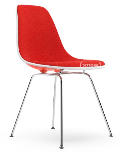 Eames Plastic Side Chair RE DSX, Rouge (rouge coquelicot), Rembourrage intégral, Corail / rouge coquelicot, Version standard - 43 cm, Chromé