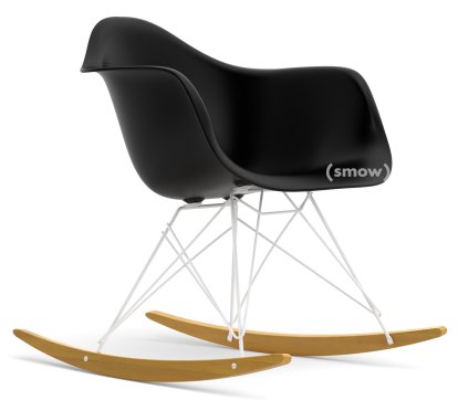 Fauteuil Eames Plastic Armchair RE RAR, Noir profond , Revêtement blanc, Érable nuance de jaune