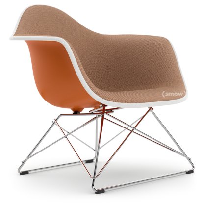 Eames Plastic Armchair RE LAR, Orange rouille, Rembourrage intégral cognac /ivoire, Chromé