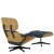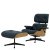 L’assise et le dossier sont en contreplaqué courbé-moulé et sont revêtus de coussins de cuir rembourrés de mousse et Dacron. Une partie de la coque constitue l’assise, une autre le dossier et la dernière l’appui-tête. La construction repose sur une structure en aluminium poli ou chromé avec côtés noirs si souhaité. Cette structure est composée d’un piétement central pivotant et de cinq pieds en forme d’étoile. Les accoudoirs en cuir tous aussi importants, sont également rembourrés et s’intègrent parfaitement à l’ensemble du design. L’Ottomane Eames accompagne de même ce design avec un piètement non-pivotant à quatre pieds, une coque de contreplaqué moulé et un revêtement en cuir rembourré. Le fauteuil Lounge Chair et son Ottomane sont disponibles en différentes sortes de bois et en un large choix de couleurs de cuir. Les Lounge Chairs & Ottoman Eames sont fabriqués, tout comme les autres meubles Eames, par Vitra pour l’Europe et l’Asie. Le succès de cette production n’a pas changé depuis 50 ans. La fabrication de ce classique du design des Eames comporte 47 étapes qui sont pour la plus part réalisées à la main. Ce qui a changé au cours des 50 dernières années, c’est la taille moyenne des individus. Celle-ci a augmenté de près de 10 cm selon les régions. C’est pourquoi le fauteuil Lounge Chair de Vitra a adapté la hauteur d’assise originelle de 84 cm et propose maintenant également une hauteur de 89 cm. Vitra, le fabricant du Lounge Chair & Ottoman offre à ses clients une expérience hors du commun. Effectivement, les visiteurs du Lounge Chair Atelier sur le Vitra Campus ont la possibilité de plonger dans l’univers Eames et d’accompagner la production de ce classique du design. Ils jetteront ainsi un coup d’œil au-dessus de l’épaule des professionnels de l’atelier afin d’observer les techniques et outils spéciaux utilisés pour la fabrication d’un original Lounge Chair et de son Ottomane par Vitra. À l’origine la coque du Lounge Chair ainsi que de son Ottomane était réalisée à partir du palissandre brésilien. Ce noble bois étant d’une grande rareté, a été interdit de commercialisation à partir de 1968 et, est classé depuis 1968 comme espèce protégée. Afin de se rapprocher optiquement le plus de ce bois, le Lounge Chair Vitra et la Lounge Chair Ottomane sont fabriqués avec du palissandre Santos. Après une version conçue par Hella Jongerius en noyer pigmenté blanc, Vitra a également ajouté à son assortiment une édition dont la coque est fabriquée en noyer pigmenté noir. Tous les placages du Lounge Chair et de l’Ottomane sont issus de bois où la gestion durable des forêts est appliquée. De plus, le siège Lounge Chair comme l’Ottomane Eames sont composés à 24 % de matériaux recyclés et ces meubles sont eux-mêmes recyclables à 29 %. Bien qu’ils puissent être recyclés, le Lounge Chair et l’Ottomane de Vitra sont théoriquement davantage pensés comme un classique du design que l’on transmet de générations en générations. Ce classique du design prend de la valeur avec le temps - non pas parce que la coque se patine avec le temps mais davantage par l'aspect du cuir qui comme Charles Eames le visualait à l'aspect d'un gant de premier gardien de base de baseball.