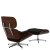 L’assise et le dossier sont en contreplaqué courbé-moulé et sont revêtus de coussins de cuir rembourrés de mousse et Dacron. Une partie de la coque constitue l’assise, une autre le dossier et la dernière l’appui-tête. La construction repose sur une structure en aluminium poli ou chromé avec côtés noirs si souhaité. Cette structure est composée d’un piétement central pivotant et de cinq pieds en forme d’étoile. Les accoudoirs en cuir tous aussi importants, sont également rembourrés et s’intègrent parfaitement à l’ensemble du design. L’Ottomane Eames accompagne de même ce design avec un piètement non-pivotant à quatre pieds, une coque de contreplaqué moulé et un revêtement en cuir rembourré. Le fauteuil Lounge Chair et son Ottomane sont disponibles en différentes sortes de bois et en un large choix de couleurs de cuir. Les Lounge Chairs & Ottoman Eames sont fabriqués, tout comme les autres meubles Eames, par Vitra pour l’Europe et l’Asie. Le succès de cette production n’a pas changé depuis 50 ans. La fabrication de ce classique du design des Eames comporte 47 étapes qui sont pour la plus part réalisées à la main. Ce qui a changé au cours des 50 dernières années, c’est la taille moyenne des individus. Celle-ci a augmenté de près de 10 cm selon les régions. C’est pourquoi le fauteuil Lounge Chair de Vitra a adapté la hauteur d’assise originelle de 84 cm et propose maintenant également une hauteur de 89 cm. Vitra, le fabricant du Lounge Chair & Ottoman offre à ses clients une expérience hors du commun. Effectivement, les visiteurs du Lounge Chair Atelier sur le Vitra Campus ont la possibilité de plonger dans l’univers Eames et d’accompagner la production de ce classique du design. Ils jetteront ainsi un coup d’œil au-dessus de l’épaule des professionnels de l’atelier afin d’observer les techniques et outils spéciaux utilisés pour la fabrication d’un original Lounge Chair et de son Ottomane par Vitra. À l’origine la coque du Lounge Chair ainsi que de son Ottomane était réalisée à partir du palissandre brésilien. Ce noble bois étant d’une grande rareté, a été interdit de commercialisation à partir de 1968 et, est classé depuis 1968 comme espèce protégée. Afin de se rapprocher optiquement le plus de ce bois, le Lounge Chair Vitra et la Lounge Chair Ottomane sont fabriqués avec du palissandre Santos. Après une version conçue par Hella Jongerius en noyer pigmenté blanc, Vitra a également ajouté à son assortiment une édition dont la coque est fabriquée en noyer pigmenté noir. Tous les placages du Lounge Chair et de l’Ottomane sont issus de bois où la gestion durable des forêts est appliquée. De plus, le siège Lounge Chair comme l’Ottomane Eames sont composés à 24 % de matériaux recyclés et ces meubles sont eux-mêmes recyclables à 29 %. Bien qu’ils puissent être recyclés, le Lounge Chair et l’Ottomane de Vitra sont théoriquement davantage pensés comme un classique du design que l’on transmet de générations en générations. Ce classique du design prend de la valeur avec le temps - non pas parce que la coque se patine avec le temps mais davantage par l'aspect du cuir qui comme Charles Eames le visualait à l'aspect d'un gant de premier gardien de base de baseball.
