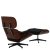 L’assise et le dossier sont en contreplaqué courbé-moulé et sont revêtus de coussins de cuir rembourrés de mousse et Dacron. Une partie de la coque constitue l’assise, une autre le dossier et la dernière l’appui-tête. La construction repose sur une structure en aluminium poli ou chromé avec côtés noirs si souhaité. Cette structure est composée d’un piétement central pivotant et de cinq pieds en forme d’étoile. Les accoudoirs en cuir tous aussi importants, sont également rembourrés et s’intègrent parfaitement à l’ensemble du design. L’Ottomane Eames accompagne de même ce design avec un piètement non-pivotant à quatre pieds, une coque de contreplaqué moulé et un revêtement en cuir rembourré. Le fauteuil Lounge Chair et son Ottomane sont disponibles en différentes sortes de bois et en un large choix de couleurs de cuir. Les Lounge Chairs & Ottoman Eames sont fabriqués, tout comme les autres meubles Eames, par Vitra pour l’Europe et l’Asie. Le succès de cette production n’a pas changé depuis 50 ans. La fabrication de ce classique du design des Eames comporte 47 étapes qui sont pour la plus part réalisées à la main. Ce qui a changé au cours des 50 dernières années, c’est la taille moyenne des individus. Celle-ci a augmenté de près de 10 cm selon les régions. C’est pourquoi le fauteuil Lounge Chair de Vitra a adapté la hauteur d’assise originelle de 84 cm et propose maintenant également une hauteur de 89 cm. Vitra, le fabricant du Lounge Chair & Ottoman offre à ses clients une expérience hors du commun. Effectivement, les visiteurs du Lounge Chair Atelier sur le Vitra Campus ont la possibilité de plonger dans l’univers Eames et d’accompagner la production de ce classique du design. Ils jetteront ainsi un coup d’œil au-dessus de l’épaule des professionnels de l’atelier afin d’observer les techniques et outils spéciaux utilisés pour la fabrication d’un original Lounge Chair et de son Ottomane par Vitra. À l’origine la coque du Lounge Chair ainsi que de son Ottomane était réalisée à partir du palissandre brésilien. Ce noble bois étant d’une grande rareté, a été interdit de commercialisation à partir de 1968 et, est classé depuis 1968 comme espèce protégée. Afin de se rapprocher optiquement le plus de ce bois, le Lounge Chair Vitra et la Lounge Chair Ottomane sont fabriqués avec du palissandre Santos. Après une version conçue par Hella Jongerius en noyer pigmenté blanc, Vitra a également ajouté à son assortiment une édition dont la coque est fabriquée en noyer pigmenté noir. Tous les placages du Lounge Chair et de l’Ottomane sont issus de bois où la gestion durable des forêts est appliquée. De plus, le siège Lounge Chair comme l’Ottomane Eames sont composés à 24 % de matériaux recyclés et ces meubles sont eux-mêmes recyclables à 29 %. Bien qu’ils puissent être recyclés, le Lounge Chair et l’Ottomane de Vitra sont théoriquement davantage pensés comme un classique du design que l’on transmet de générations en générations. Ce classique du design prend de la valeur avec le temps - non pas parce que la coque se patine avec le temps mais davantage par l'aspect du cuir qui comme Charles Eames le visualait à l'aspect d'un gant de premier gardien de base de baseball.