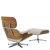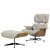 L’assise et le dossier sont en contreplaqué courbé-moulé et sont revêtus de coussins de cuir rembourrés de mousse et Dacron. Une partie de la coque constitue l’assise, une autre le dossier et la dernière l’appui-tête. La construction repose sur une structure en aluminium poli ou chromé avec côtés noirs si souhaité. Cette structure est composée d’un piétement central pivotant et de cinq pieds en forme d’étoile. Les accoudoirs en cuir tous aussi importants, sont également rembourrés et s’intègrent parfaitement à l’ensemble du design. L’Ottomane Eames accompagne de même ce design avec un piètement non-pivotant à quatre pieds, une coque de contreplaqué moulé et un revêtement en cuir rembourré. Le fauteuil Lounge Chair et son Ottomane sont disponibles en différentes sortes de bois et en un large choix de couleurs de cuir. Les Lounge Chairs & Ottoman Eames sont fabriqués, tout comme les autres meubles Eames, par Vitra pour l’Europe et l’Asie. Le succès de cette production n’a pas changé depuis 50 ans. La fabrication de ce classique du design des Eames comporte 47 étapes qui sont pour la plus part réalisées à la main. Ce qui a changé au cours des 50 dernières années, c’est la taille moyenne des individus. Celle-ci a augmenté de près de 10 cm selon les régions. C’est pourquoi le fauteuil Lounge Chair de Vitra a adapté la hauteur d’assise originelle de 84 cm et propose maintenant également une hauteur de 89 cm. Vitra, le fabricant du Lounge Chair & Ottoman offre à ses clients une expérience hors du commun. Effectivement, les visiteurs du Lounge Chair Atelier sur le Vitra Campus ont la possibilité de plonger dans l’univers Eames et d’accompagner la production de ce classique du design. Ils jetteront ainsi un coup d’œil au-dessus de l’épaule des professionnels de l’atelier afin d’observer les techniques et outils spéciaux utilisés pour la fabrication d’un original Lounge Chair et de son Ottomane par Vitra. À l’origine la coque du Lounge Chair ainsi que de son Ottomane était réalisée à partir du palissandre brésilien. Ce noble bois étant d’une grande rareté, a été interdit de commercialisation à partir de 1968 et, est classé depuis 1968 comme espèce protégée. Afin de se rapprocher optiquement le plus de ce bois, le Lounge Chair Vitra et la Lounge Chair Ottomane sont fabriqués avec du palissandre Santos. Après une version conçue par Hella Jongerius en noyer pigmenté blanc, Vitra a également ajouté à son assortiment une édition dont la coque est fabriquée en noyer pigmenté noir. Tous les placages du Lounge Chair et de l’Ottomane sont issus de bois où la gestion durable des forêts est appliquée. De plus, le siège Lounge Chair comme l’Ottomane Eames sont composés à 24 % de matériaux recyclés et ces meubles sont eux-mêmes recyclables à 29 %. Bien qu’ils puissent être recyclés, le Lounge Chair et l’Ottomane de Vitra sont théoriquement davantage pensés comme un classique du design que l’on transmet de générations en générations. Ce classique du design prend de la valeur avec le temps - non pas parce que la coque se patine avec le temps mais davantage par l'aspect du cuir qui comme Charles Eames le visualait à l'aspect d'un gant de premier gardien de base de baseball.