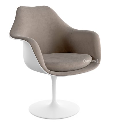 Fauteuil Tulipe Saarinen, Statique, Coque et coussin d'assise rembourré, Blanc, Beige (Eva 177)