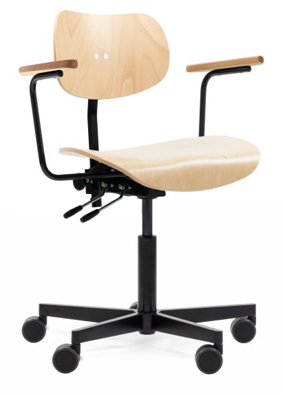 Chaises pivotantes S 197 R20, Avec accoudoirs, Hêtre naturel, Poudre noir mat, Roulettes standard noir pour sols durs