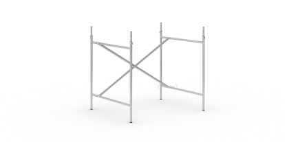 Le châssis Eiermann 1 est sans aucun doute un classique du design moderne. Dessiné en 1953 par Egon Eiermann, le cadre est composé de deux éléments latéraux formés par des tubes en acier reliés entre eux et stabilisés grâce à deux barres transversales qui se croisent en diagonale et sont tenues par une vis. Fidèle à ses principes esthétiques, Eiermann à eu recours à un minimum de matériaux pour obtenir un maximum de stabilité, et cela explique peut-être que sa table soit si unique et si flexible.