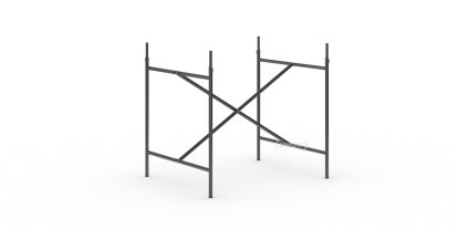 Le châssis Eiermann 1 est sans aucun doute un classique du design moderne. Dessiné en 1953 par Egon Eiermann, le cadre est composé de deux éléments latéraux formés par des tubes en acier reliés entre eux et stabilisés grâce à deux barres transversales qui se croisent en diagonale et sont tenues par une vis. Fidèle à ses principes esthétiques, Eiermann à eu recours à un minimum de matériaux pour obtenir un maximum de stabilité, et cela explique peut-être que sa table soit si unique et si flexible.