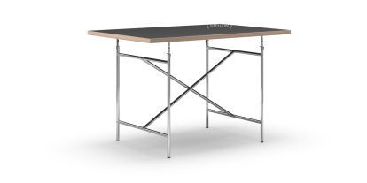 Table Eiermann, Linoleum noir (Forbo 4023) avec bords en chêne, 120 x 80 cm, Chromé, Vertical, centré (Eiermann 2), 80 x 66 cm