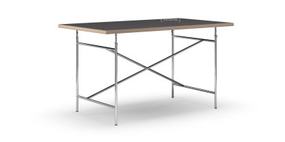 Table Eiermann, Linoleum noir (Forbo 4023) avec bords en chêne, 140 x 80 cm, Chromé, Oblique, centré (Eiermann 1), 110 x 66 cm