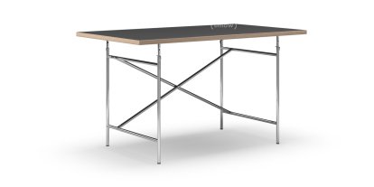 Table Eiermann, Linoleum noir (Forbo 4023) avec bords en chêne, 140 x 80 cm, Chromé, Vertical, décalé (Eiermann 2), 100 x 66 cm