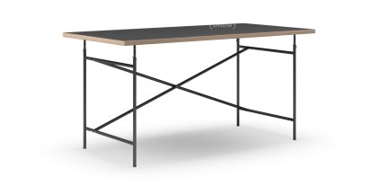 Table Eiermann Linoleum noir (Forbo 4023) avec bords en chêne|160 x 80 cm|Noir|Vertical, décalé (Eiermann 2)|135 x 66 cm