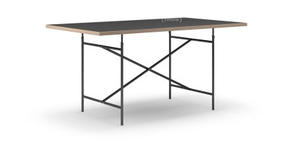 Table Eiermann, Linoleum noir (Forbo 4023) avec bords en chêne, 160 x 90 cm, Noir, Vertical, centré (Eiermann 2), 100 x 66 cm