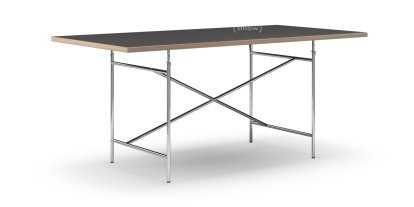 Table Eiermann, Linoleum noir (Forbo 4023) avec bords en chêne, 180 x 90 cm, Chromé, Oblique, centré (Eiermann 1), 110 x 66 cm