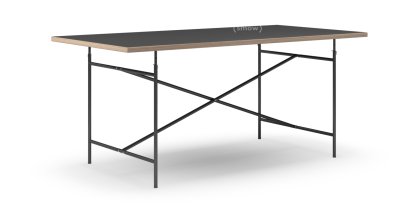 Table Eiermann, Linoleum noir (Forbo 4023) avec bords en chêne, 180 x 90 cm, Noir, Vertical, centré (Eiermann 2), 135 x 78 cm