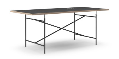 Table Eiermann, Linoleum noir (Forbo 4023) avec bords en chêne, 200 x 90 cm, Noir, Vertical, centré (Eiermann 2), 135 x 78 cm