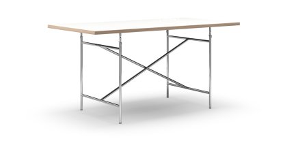 Table Eiermann, Mélaminé blanc avec bords chêne, 160 x 80 cm, Chromé, Vertical, centré (Eiermann 2), 100 x 66 cm