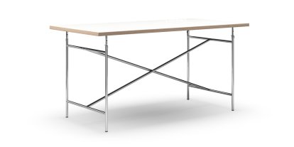 Table Eiermann, Mélaminé blanc avec bords chêne, 160 x 80 cm, Chromé, Vertical, centré (Eiermann 2), 135 x 66 cm