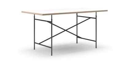 Table Eiermann, Mélaminé blanc avec bords chêne, 160 x 80 cm, Noir, Oblique, centré (Eiermann 1), 110 x 66 cm