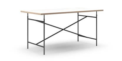 Table Eiermann, Mélaminé blanc avec bords chêne, 160 x 80 cm, Noir, Vertical, centré (Eiermann 2), 135 x 66 cm