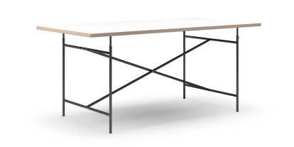 La table Eiermann, montée sur un châssis en métal avec des barres transversales qui se croisent en diagonale, a été créée en 1953 par Egon Eiermann. En 1965, Adam Wieland, alors directeur d’atelier à la Technischen Hochschule Karlsruhe, où Eiermann enseignait, retravailla le design de la table pour créer une version avec des barres qui se croisent à la verticale. Cette nouvelle version présente l’avantage de faciliter le démontage et le transport du châssis. Elle reste toutefois moins élégante que la version initiale. Le fabricant de meubles Richard Lampert fournit également un plateau adapté aux châssis Eiermann. Les plateaux sont aussi disponibles en différentes couleurs, ce qui permet de réaliser des combinaisons variées. En définitive, la table Eiermann, parfois qualifiée de bureau d’architecte en raison de son succès auprès des architectes, fait figure de symbole du fonctionnalisme moderne.