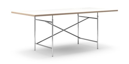Table Eiermann, Mélaminé blanc avec bords chêne, 200 x 90 cm, Chromé, Vertical, décalé (Eiermann 2), 135 x 78 cm