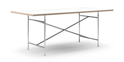 Table Eiermann, Mélaminé blanc avec bords chêne, 200 x 90 cm, Chromé, Vertical, centré (Eiermann 2), 135 x 66 cm