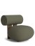Les formes douces de l'assise et du dossier du fauteuil lounge Hippo de Norr11 offrent un contraste saisissant avec le piètement anguleux