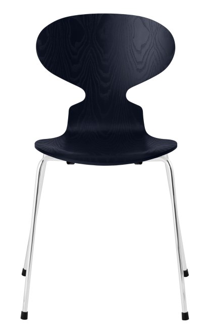 Chaise Fourmi (Ant), Frêne coloré, Bleu nuit, Chromé
