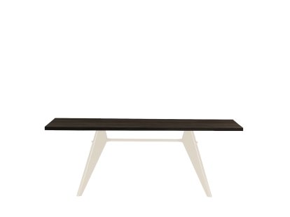 La table EM, dessinée par Jean Prouvé au début des années 1950 dans le cadre du projet "Maison Tropique", est actuellement éditée par le fabricant de meubles suisse Vitra. La particularité esthétique réside dans le piètement. Effectivement, les quatre pieds de la table sont reliés par une traverse et sont inclinés en diagonal. Cela apporte une extrême stabilité et un charme indéniable. De plus, le plateau de table est disponible en cinq tailles et s'adapte ainsi parfaitement aux différentes grandeurs de pièces ou de coupes.