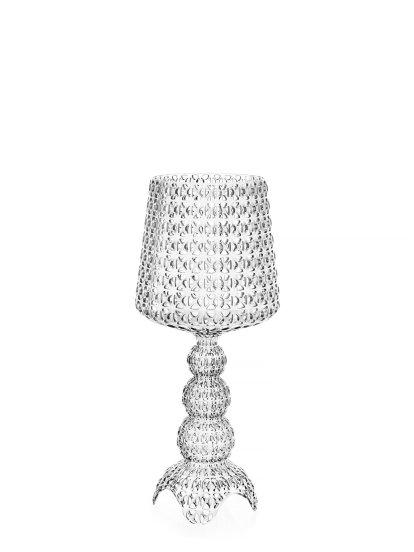 Kartell et le designer Ferruccio Laviani allient tradition et modernité avec la lampe de table Mini Kabuki : l'élégant motif en dentelle et l'évocation formelle d'un verre à vin s'harmonisent parfaitement avec le matériau exceptionnel. La lumière est réfractée d'une manière particulière et son intensité est réglable pour une ambiance toujours adaptée.