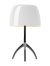 | Variantes | En option avec régulateur de luminosité Aussi disponible en version petite Lumiere 05 Tavolo Piccola Piètement également disponible en version chromée noir ou champagne sur demande |