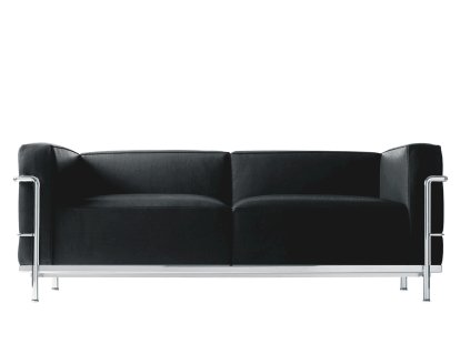 Le canapé LC3, version deux ou trois places, est le plus grand meuble de la Collection LC du fabricant Cassina. Ce dernier produit les meubles à l’identique selon les esquisses de l’architecte-designer Le Corbusier. Bien que celui-ci ne fût pas l’unique concepteur de ces meubles, on lui attribue le plus souvent d’en être le créateur au détriment de son cousin et designer Pierre Jeanneret et de la prometteuse artiste Charlotte Perriand. Ce trio de designers ont collaboré près de 10 ans et ont conçu, mis à part la série LC, des aménagements intérieurs et des bâtiments. Leur plus grand succès fut cette série LC, dont le canapé LC3 fait partie, fût créée en 1928, première version réalisée pour la Villa Church. Cependant, la première apparition publique du fauteuil LC3 et de l’ensemble de la collection LC remonte à 1929 lors de son exposition au salon d’automne de Paris. Le design de la famille des LC correspond au style du Bauhaus, design très fleurissant dans les années 20 grâce à son langage aux formes et lignes épurées, son côté fonctionnel et ses matériaux combinant l’usinage et le savoir-faire artisanal. Le canapé LC3 du trio de designers est composé, comme les autres meubles LC dont le fauteuil LC3, d’une structure d’acier robuste formant un cadre dans lequel les coussins, le dossier et l’assise sont maintenus. L’ensemble participe ainsi à un confort extrêmement enveloppant et confortable pour la détente ou les longues conservations. Il suffit de s’installer une fois dans le fauteuil LC3 ou le LC2(20 cm plus étroit), pour le plus vouloir le quitter. Effectivement, on s’enfonce dans les coussins particulièrement mous grâce au rembourrage de mousse de polyuréthane et de ouate de polyester tandis les avant-bras reposent sur les hauts accotoirs. Un vrai nid douillet.